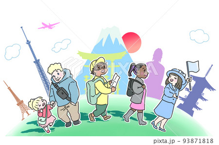インバウンド需要、訪日観光客をイメージする人々のイラストのイラスト素材105312633- PIXTA。