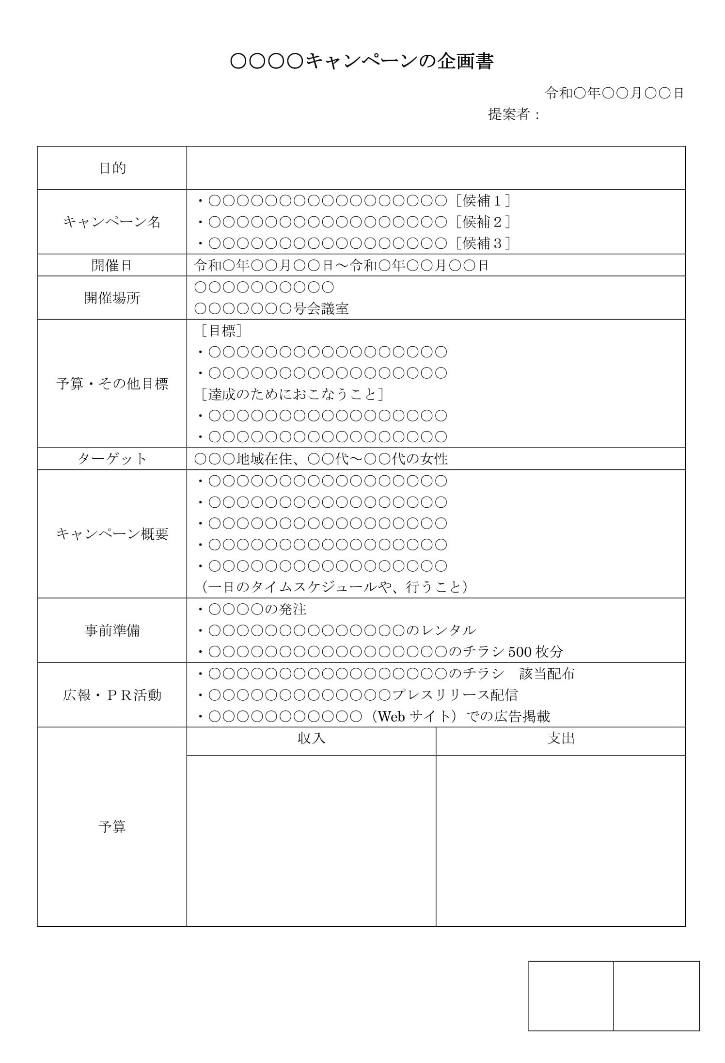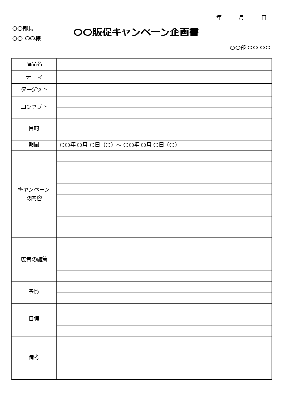 企画書 キャンペーン の書式テンプレート Word・ワードテンプレート・フリーBiz。