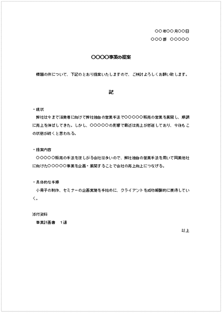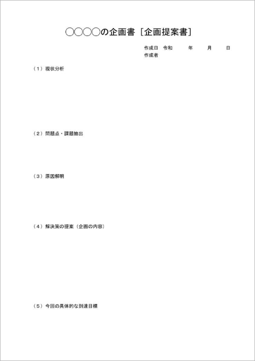 企画提案書の書式・文例テンプレート Word・ワードテンプレート・フリーBiz。