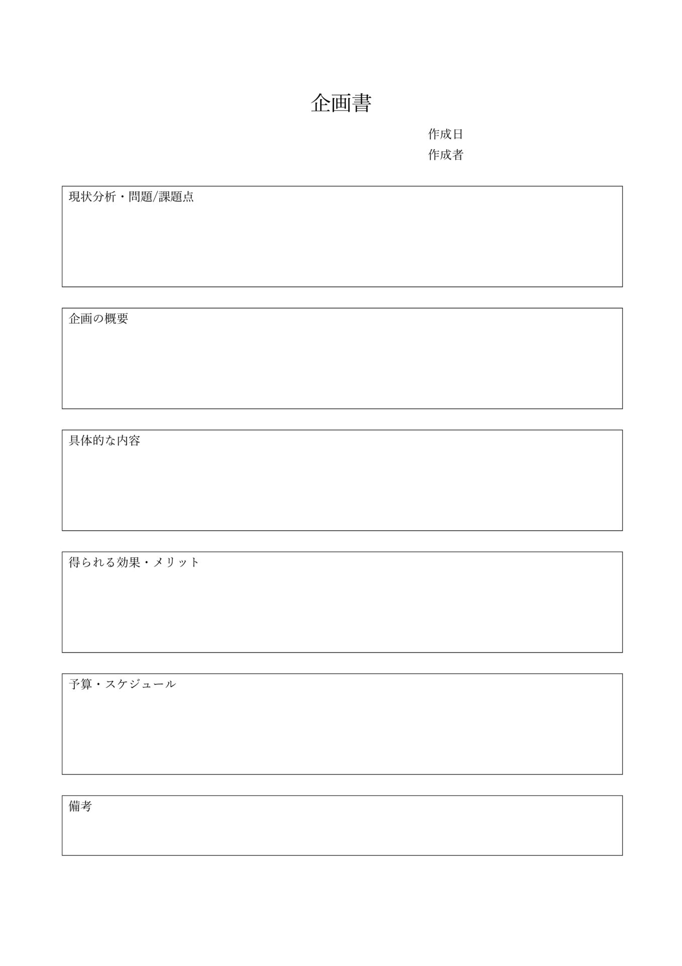 すぐに使える企画書テンプレート Word・Excel・PDF・G Docs 無料・登録不要ビズ研。