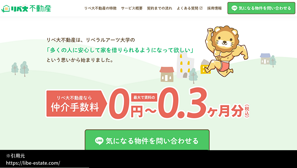 リベ大不動産仲介手数料0円から最大で賃料0.44ヶ月分賃貸マンション・アパート・一戸建て。