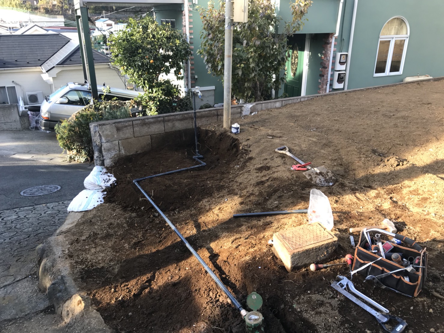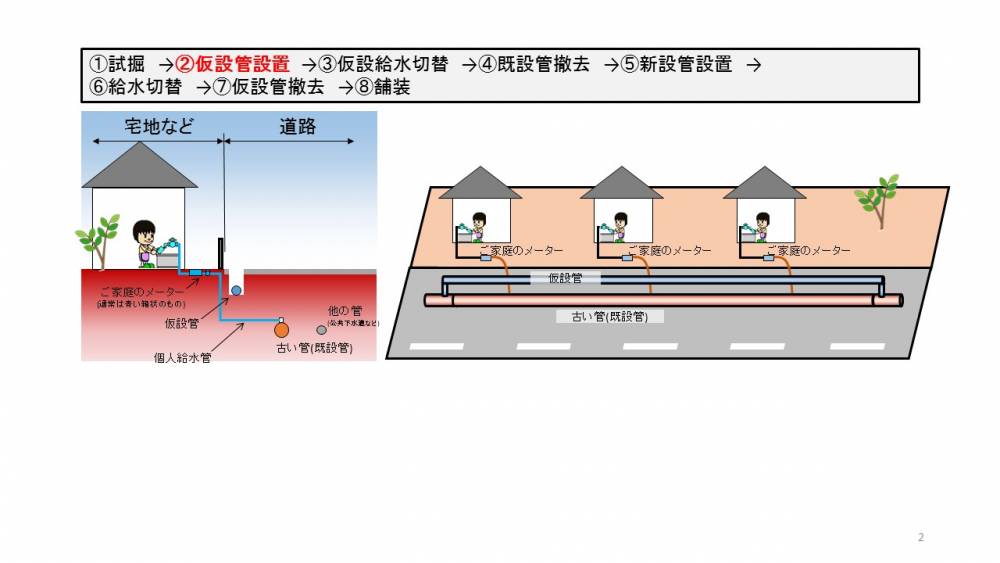 解体工事に伴う仮設給水管設置工事有限会社スドウ工営。