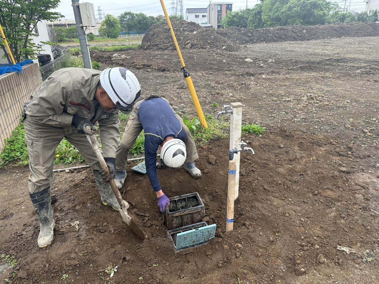 市川市田尻 新規新築着工にともない仮設水道設置! どんな家が建つのか楽しみ😄新築給排水設備上水下水雨水浄化槽申請仮設水道水道屋設備屋着工外水道立水栓。