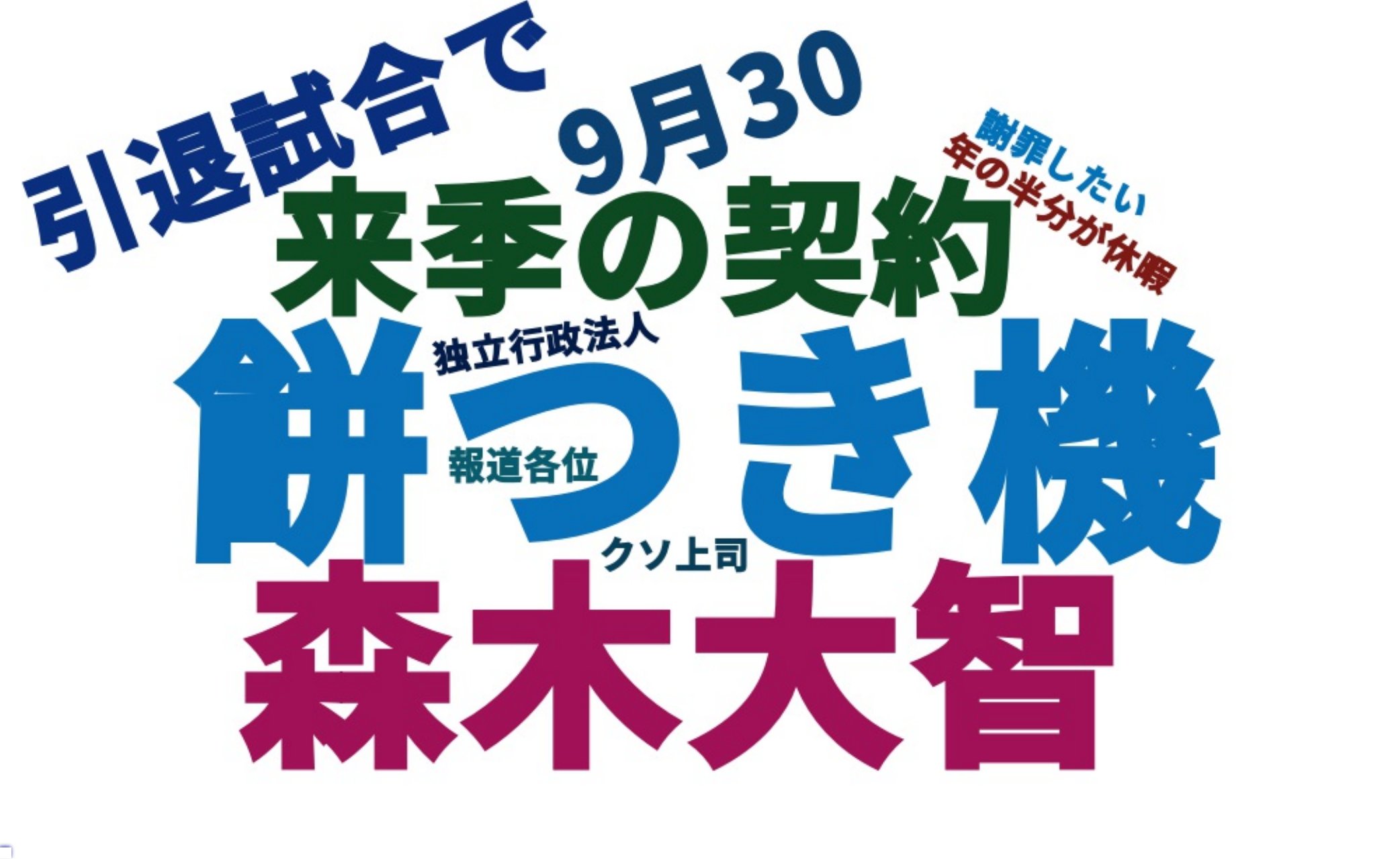 速報 トレンド情報局🎈 on X: " 今のトレンドワード 🥇餅つき機 🥈森木大智 来季の契約🥉引退試合で 9月30🏅年の半分が休暇 独立行政法人🎖報道各位 謝罪したい🎖クソ上司 https:t.co YoqFD1oJ2q"X。