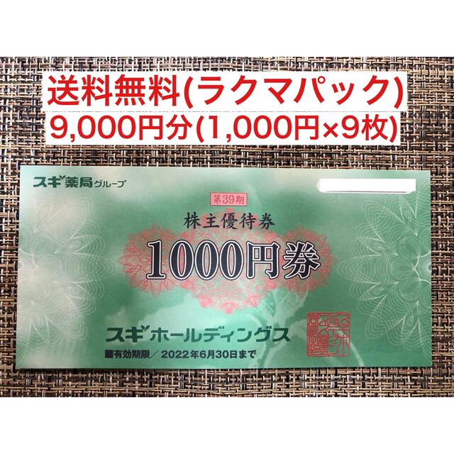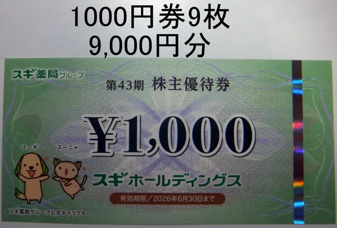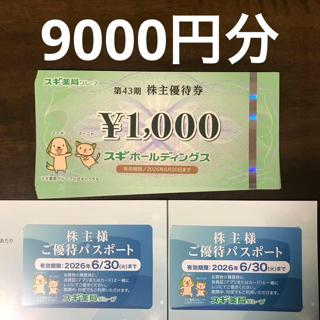 スギホールディングススギ薬局株主優待券9,000円分 1,000円券×。
