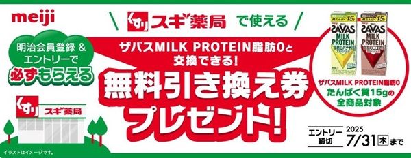 2025 7 31まで!明治会員IDでエントリーするだけでスギ薬局で交換できるザバス MILK PROTEINの引き換え券が貰える! - サイドバーシーナ。