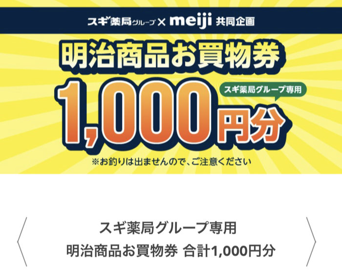 スギ薬局×明治のアプリ懸賞で「お買い物券1,000円分」が当選しました!懸賞主婦懸賞で生活するブログ。