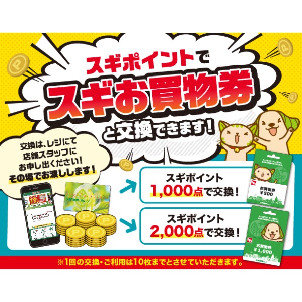 朗報 スギ薬局のポイントがなんとお買物券に交換できるようになりました!これは嬉しい。