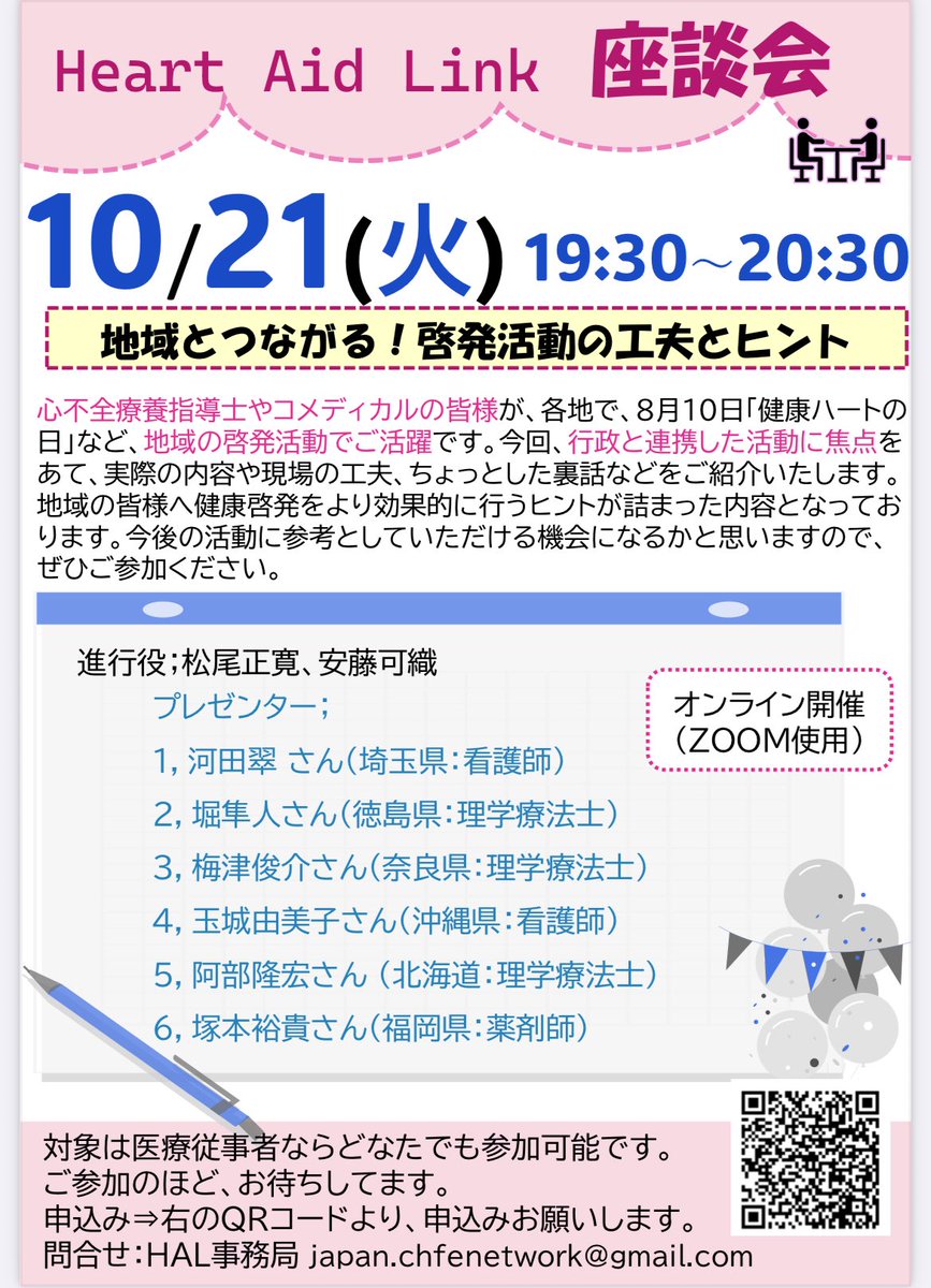 ゆはな@yuhana262230 : "地域とつながる力を高めたい方へ! Heart Aid Link 座談会 10 21 火19:3 "。