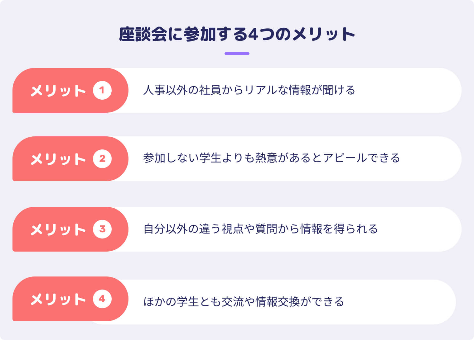 座談会とは? 94の質問例と就活生に聞いた参加メリットHR team PLUS by HR team。
