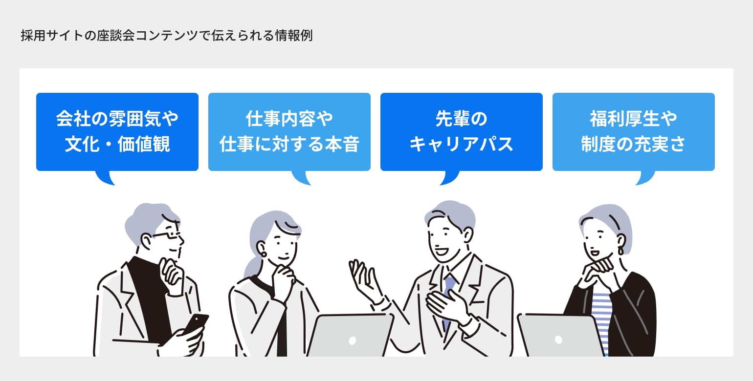 採用サイトに座談会が必要な理由!社員を魅力的に伝える作成方法やポイントを実例交えて紹介東京・大阪のホームページ・Web制作会社ジーピーオンライン。