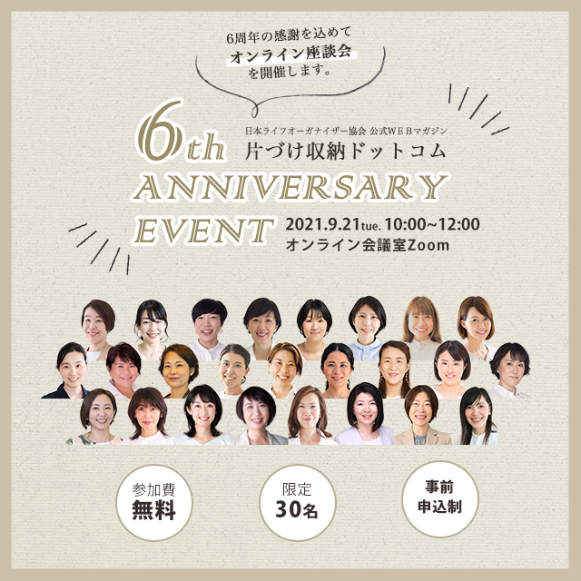 開設6周年記念特別企画「オンライン座談会にご招待します」 - 片づけ収納ドットコム。