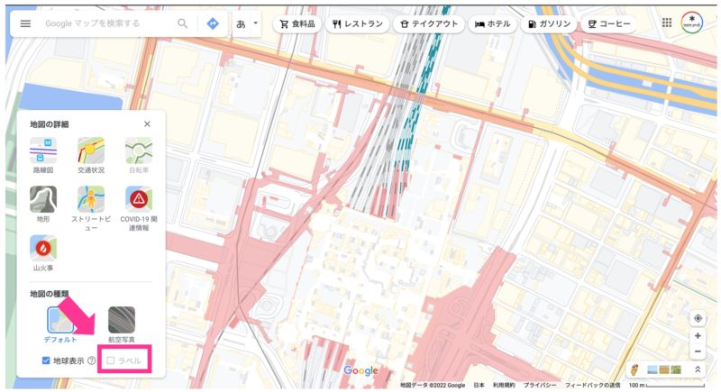 2025年最新 Googleマップ上の文字を消す 非表示 方法。