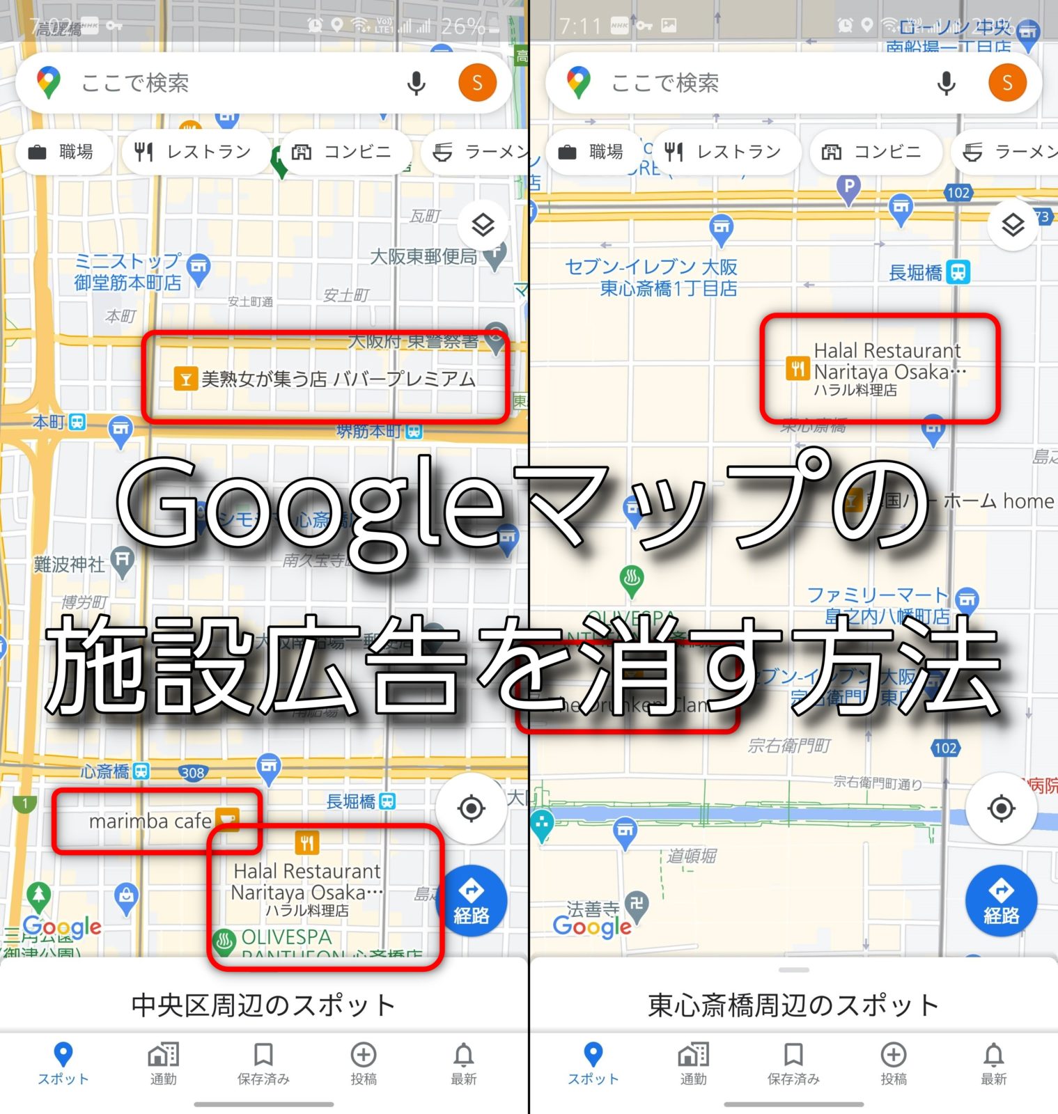 スマホのGoogleマップで画面下半分に出るパネルを消したいでじログ部。
